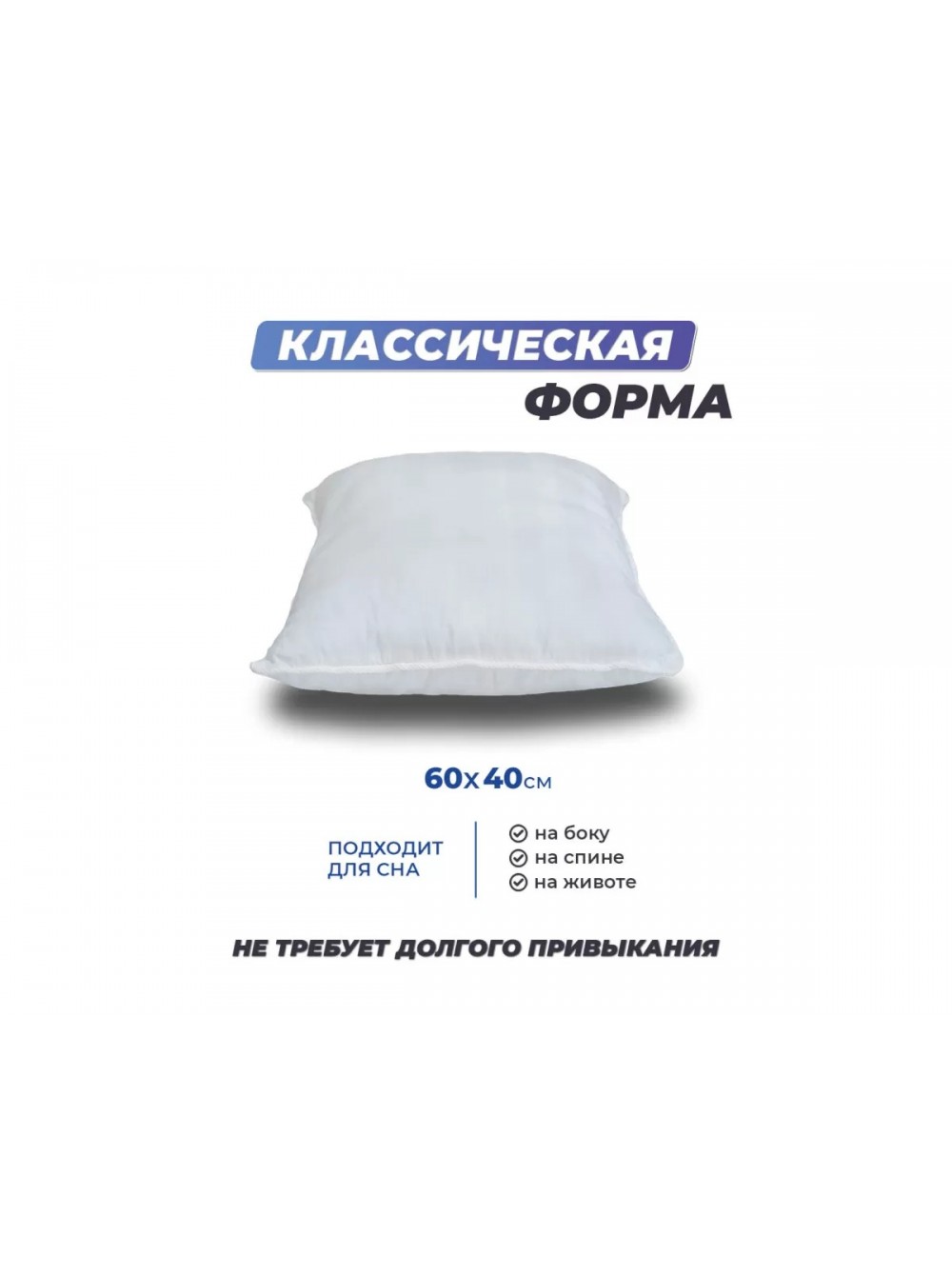 | Особенности | легкость, мягкость, воздушная форма, плотная набивка исключает провалы и впадины в подушке, значительный объем наполнителя (0,685 кг) |