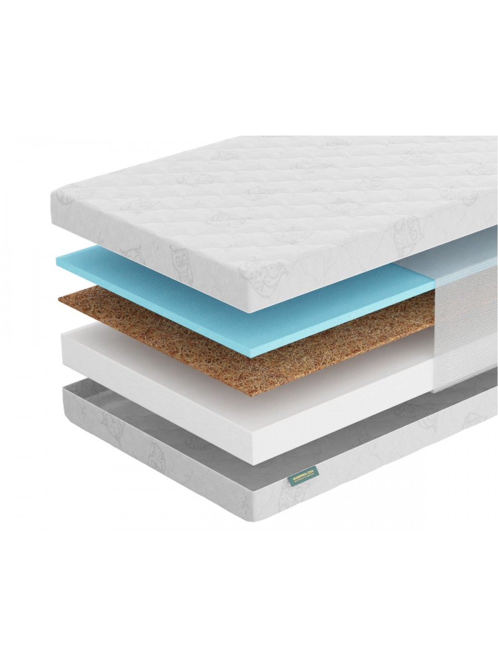 Состав матраса Киндер-4.10 идет из кокосовой койры и пены Air Foam. Модель матраса идет с двух сторон разно разной жесткости: средний/ среднежесткий.