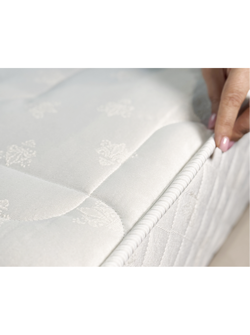 1.Жаккардовый чехол  Чехол выполнен из прочной, износостойкой ткани жаккард люкс, простеганной на объемном холконе в сочетании с пеной Memori Foam. Благодаря чему в матрасе создается дополнительный анатомический слой, продлевается срок эксплуатации, изделие приобретает неповторимый внешний вид. 3D сетка по периметру матраса обеспечивает хорошую вентилируемость и сохраняет оптимальный микроклимат во время сна.